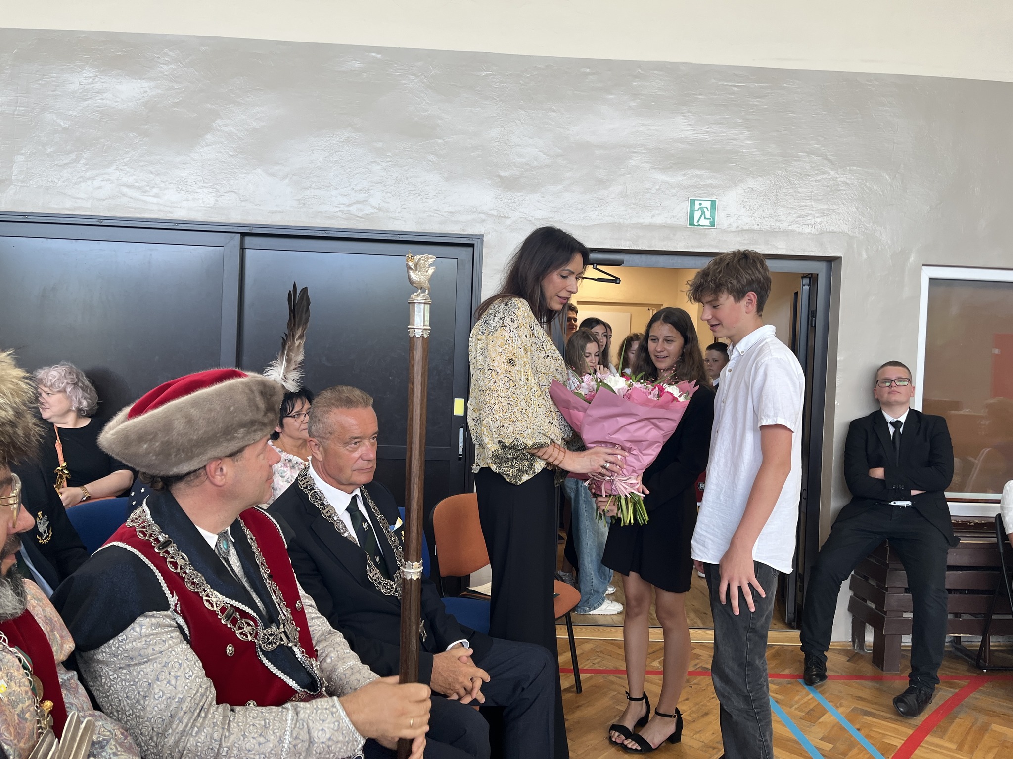 Podczas uroczystości zostały wręczone nagrody dla najlepszych uczniów, w tym wpisy do Złotej Księgi.