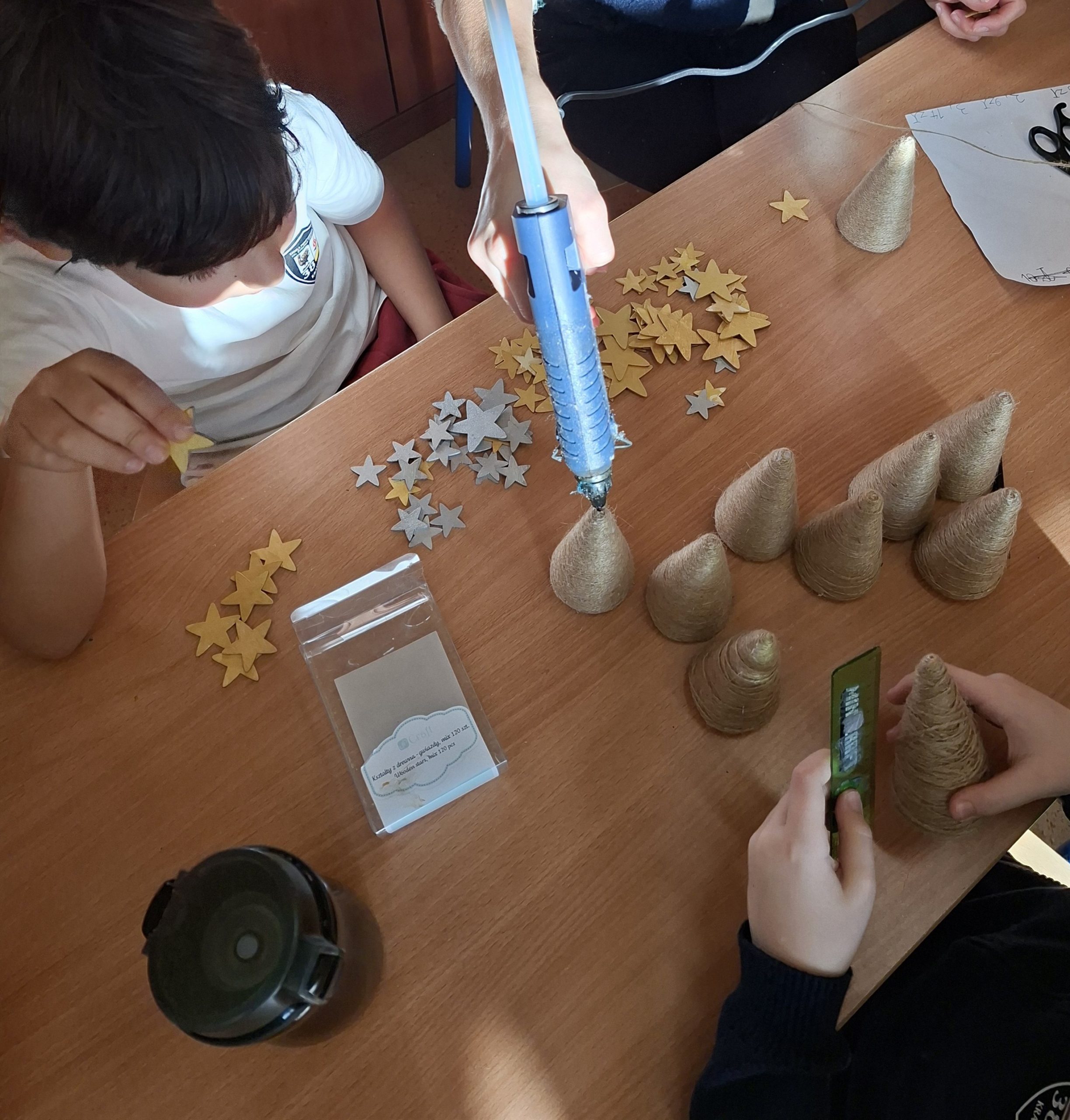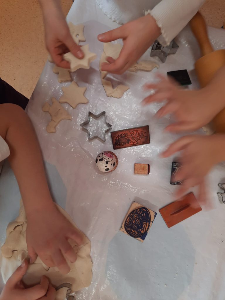 Świetliki dzielnie pracują i przygotowują piękne prace na kiermasz świąteczny. Pojawiają się choinki, aniołki, gwiazdeczki i inne cudeńka. Dzieci bardzo się angażują i starają, by prace wyszły jak najlepiej.