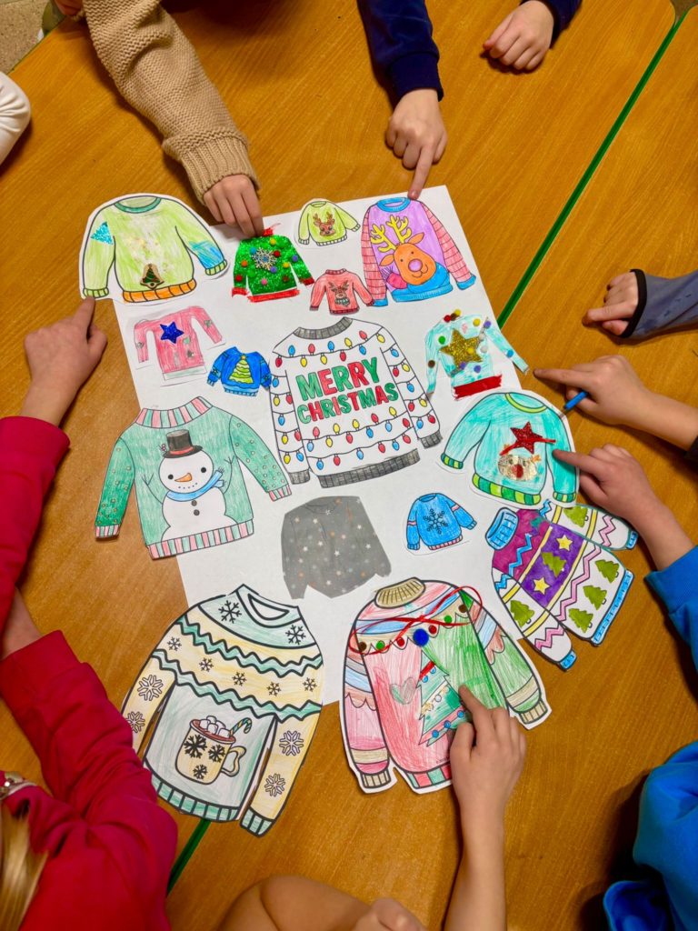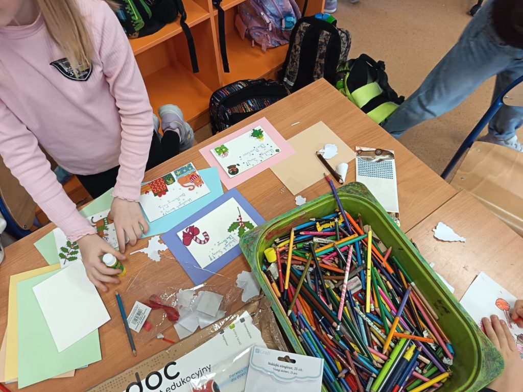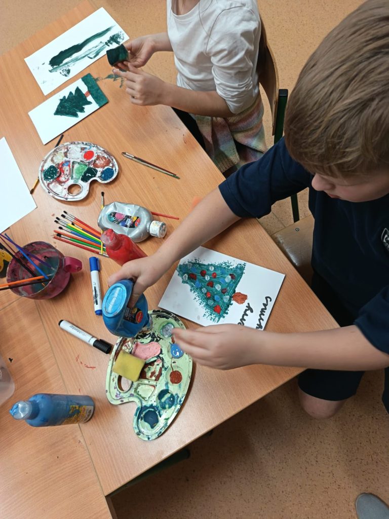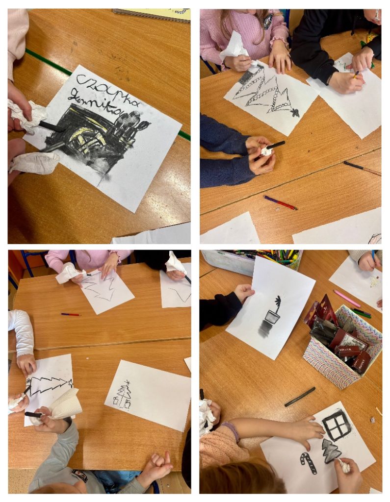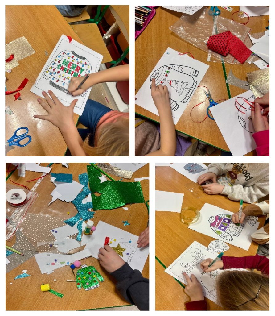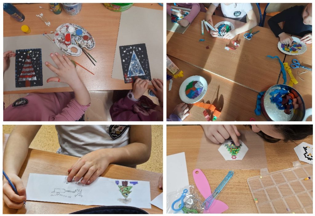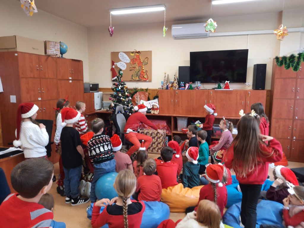 W minionym czasie w świetlicy szkolnej dużo się działo. Obchodziliśmy Dzień Świątecznego Swetra projektując i dekorując papierowe sweterki. Światowy Dzień Futbolu świetliki uczciły rozgrywając zacięty mecz, w którym chętnie udział wzięły dziewczynki i chłopcy. Poznaliśmy także historię piłki nożnej. Śpiewaliśmy kolędy, ubieraliśmy wspólnie choinkę, a 6 grudnia zawitał do nas Mikołaj, który przyniósł nam dużo prezentów. Wśród nich były różne nowe gry, artykuły plastyczne, klocki lego, magnetyczne i duże konstrukcyjne klocki do budowania wszelkiego rodzaju baz, domków i pojazdów jeżdżących. Ten ostatni wzbudził wielki entuzjazm nawet u najstarszych świetlików. Przygotowywaliśmy się do kiermaszu bożonarodzeniowego. Dzieci tworzyły ozdoby świąteczne, breloczki, zawieszki, choinki, figurki itp. oraz malowały kartki. Podczas zajęć z przysłowiami dzieci wysłuchały opowiadania z morałem, a następnie zgadywały o jakie przysłowie chodzi, a brzmiało ono: Prawdziwych przyjaciół poznaje się w biedzie. Później uczniowie wspólnie kolorowali puzzle tematyczne. Obchodziliśmy Barbórkę i przy tej okazji dowiedzieliśmy się jak powstał węgiel i do czego jest wykorzystywany. Był też film edukacyjny i prace świąteczne rysowane węglem.