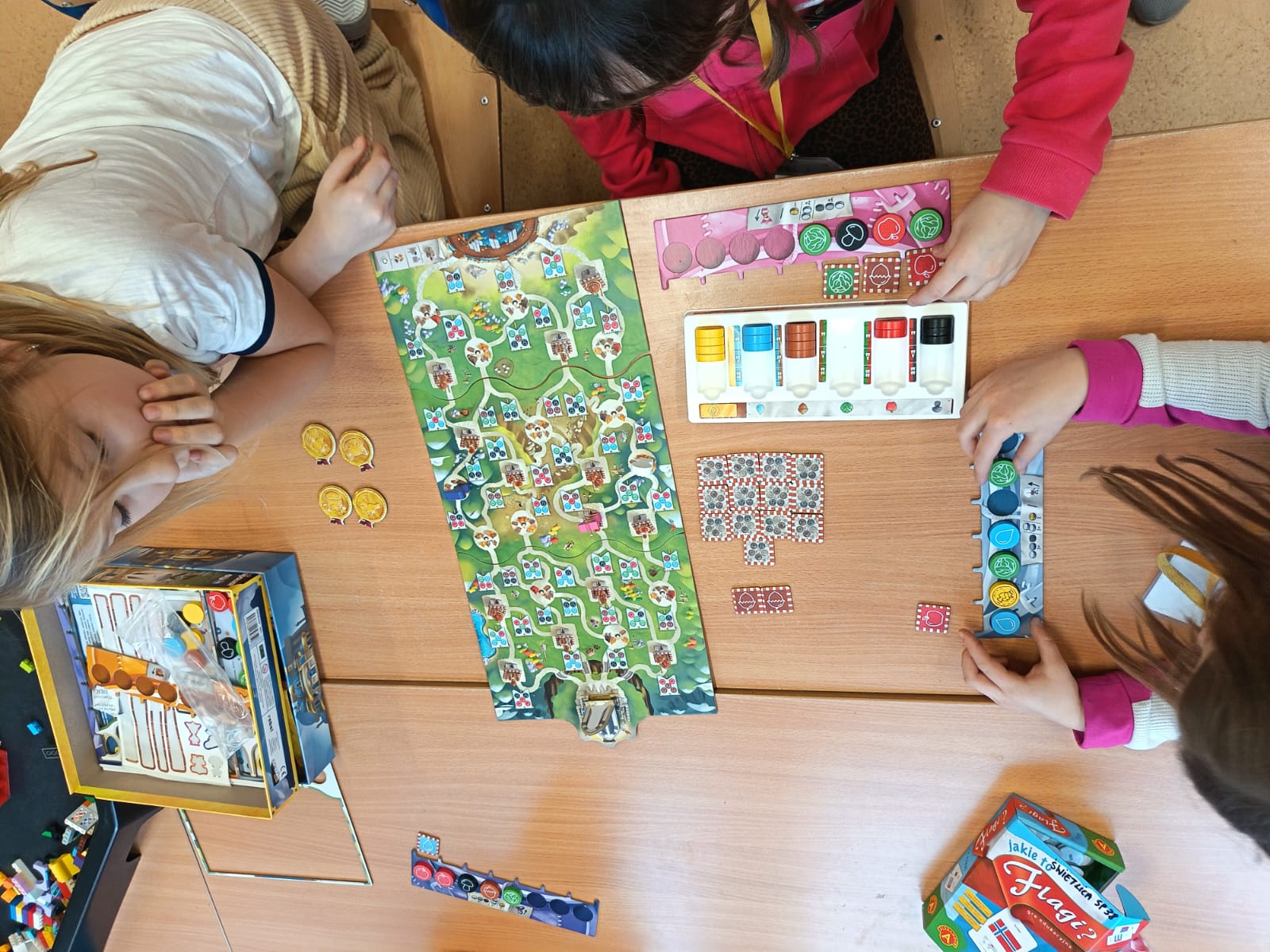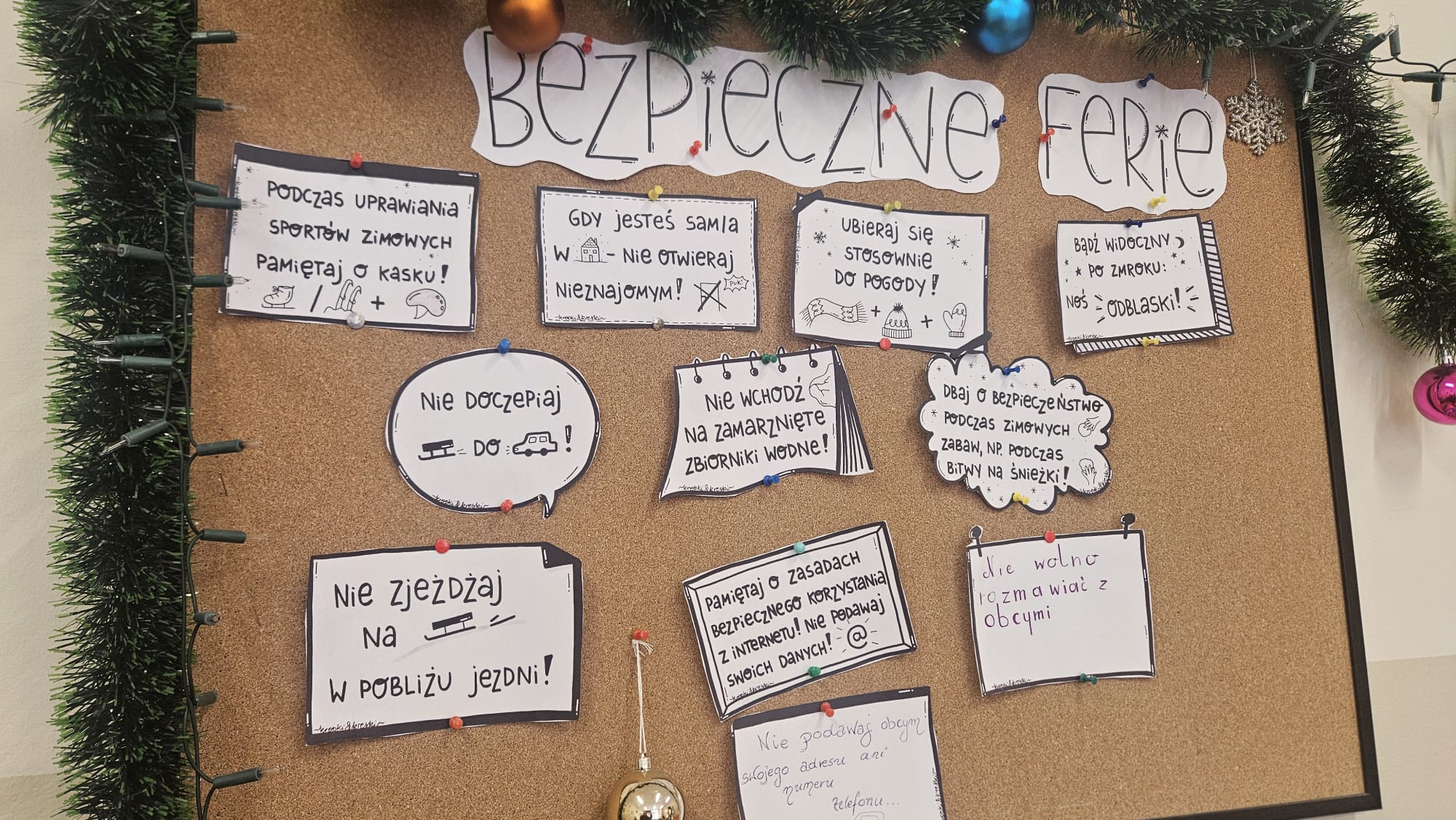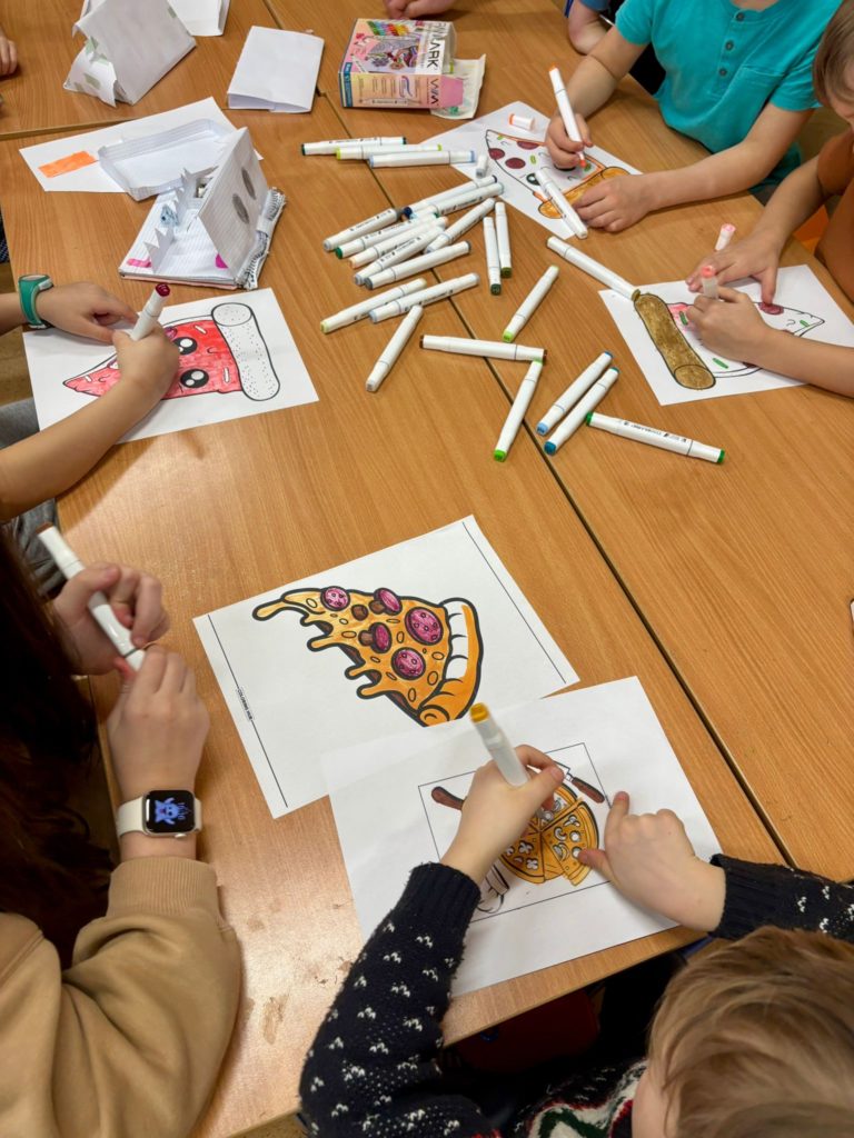 Na początku stycznia obchodziliśmy światowy Dzień Bajgla. Poznaliśmy historię bajgla i obwarzanka krakowskiego, a z filmu edukacyjnego dowiedzieliśmy się jakie są sposoby ich wypiekania. Stworzyliśmy plakat z ozdobionymi przez dzieci obwarzankami. Podobnie świętowaliśmy również Dzień Pizzy. Na zajęciach z przysłowiami polskimi dzieci dowiedziały się co znaczy „Idzie luty podkuj buty”. Rozmawialiśmy o bezpieczeństwie podczas zimowych zabaw i stworzyliśmy kodeks bezpiecznych zachowań podczas ferii. Tworzyliśmy bransoletki z muliny. Malowaliśmy zimowe drzewa. Tworzyliśmy prace długopisami 3D o różnej tematyce i uzyskując ciekawe efekty, dzięki łączeniu z innymi materiałami, jak sznurek czy papier. Świetliki uczestniczyły w zajęciach z rytmiki, karaoke, mat tanecznych. Bawiły się w tematycznych kącikach zabaw, grały w gry planszowe, konstruowały twórczo z różnego rodzaju klocków.